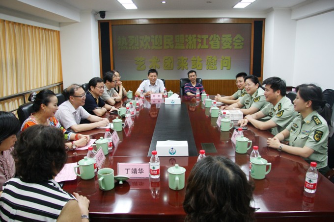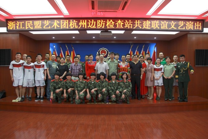 演出前,雙方舉行了共建交流座談會(huì),觀看了影像資料片,并參觀了營區(qū)建設(shè)情況。杭州邊防檢查站黨委書記、政委黃士君首先介紹了杭州邊檢站的基本情況、工作職責(zé)、業(yè)務(wù)狀況、人才建設(shè)和在維護(hù)國家安全方面所做的貢獻(xiàn)。杭州邊防檢查站黨委副書記、站長王紅對(duì)民盟省委會(huì)和浙江民盟藝術(shù)團(tuán)的來訪演出表示感謝,并介紹了杭州邊檢站在提高邊檢服務(wù)水平方面的工作和相關(guān)獎(jiǎng)勵(lì)表彰情況。民盟省委會(huì)副主委徐向東介紹了民盟省委會(huì)的基本情況、主要職能及開展工作情況,并對(duì)如何發(fā)揮民盟的智力優(yōu)勢(shì)、進(jìn)一步加強(qiáng)交流學(xué)習(xí)提出了設(shè)想,得到了邊檢站領(lǐng)導(dǎo)的一致肯定和歡迎。