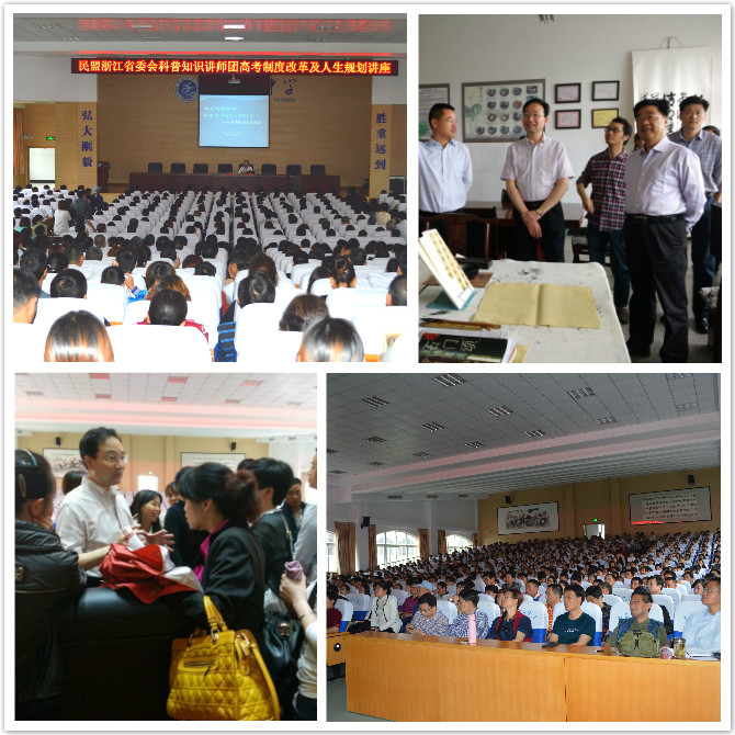 5月16日下午,新安江中學(xué)能容納800人的報(bào)告廳座無(wú)虛席,甚至報(bào)告廳過(guò)道臨時(shí)擺放的座位上都坐滿(mǎn)了高一學(xué)生的家長(zhǎng)。民盟省委會(huì)科普講師團(tuán)成員、浙江大學(xué)城市學(xué)院副院長(zhǎng)朱永平教授正在做“關(guān)于高考制度改革及人生規(guī)劃”的講座。繼今年初走進(jìn)汾口中學(xué)之后,民盟省委會(huì)科普講師團(tuán)在民盟省委委員、科普講師團(tuán)團(tuán)長(zhǎng)陳漭,民盟省委會(huì)社會(huì)服務(wù)部副部長(zhǎng)鄭霞意的帶領(lǐng)下又來(lái)到了建德新安江中學(xué),就怎樣正確理解吃透高考綜合改革試點(diǎn)方案,如何更好地適應(yīng)改革,應(yīng)對(duì)這次改革所帶來(lái)的挑戰(zhàn)和機(jī)遇,做好人生規(guī)劃等方面給予指導(dǎo)。